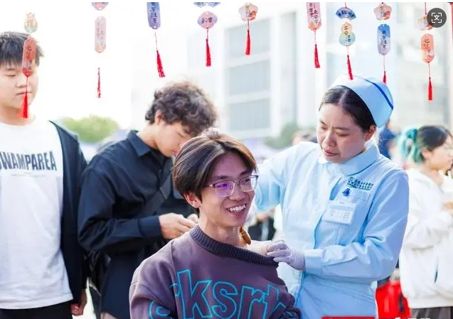 活动现场,中医义诊、刮痧艾灸、小儿推拿、中药膳食茶饮等多个摊位双向排开,多名省市名老中医、临床科室主任、上百名医护人员将服务前移,走进校园解答健康疑问、讲解中医养生知识,面对面传授文化,普及中医“治未病”文化理念。参加活动的学生们在各个摊位前排起长队,有的咨询问诊,有的体验中医疗法,还有的参与中医药小游戏,切身感受中医药文化的独特魅力。